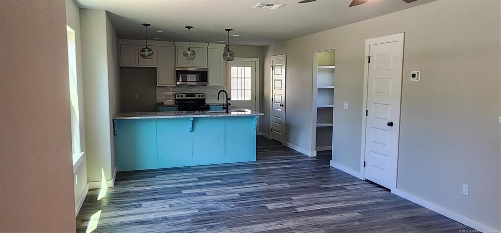 New construction! Built with quality in mind, many upgrades throughout. 3 bedrooms; 1.5 bathrooms, laundry room upstairs. Open floor plan, kitchen with custom cabinets and granite counters. Pantry, Beautiful stairwell and laminate wood flooring. Covered entryway, and a covered patio for entertainment. Small built-in storage area
